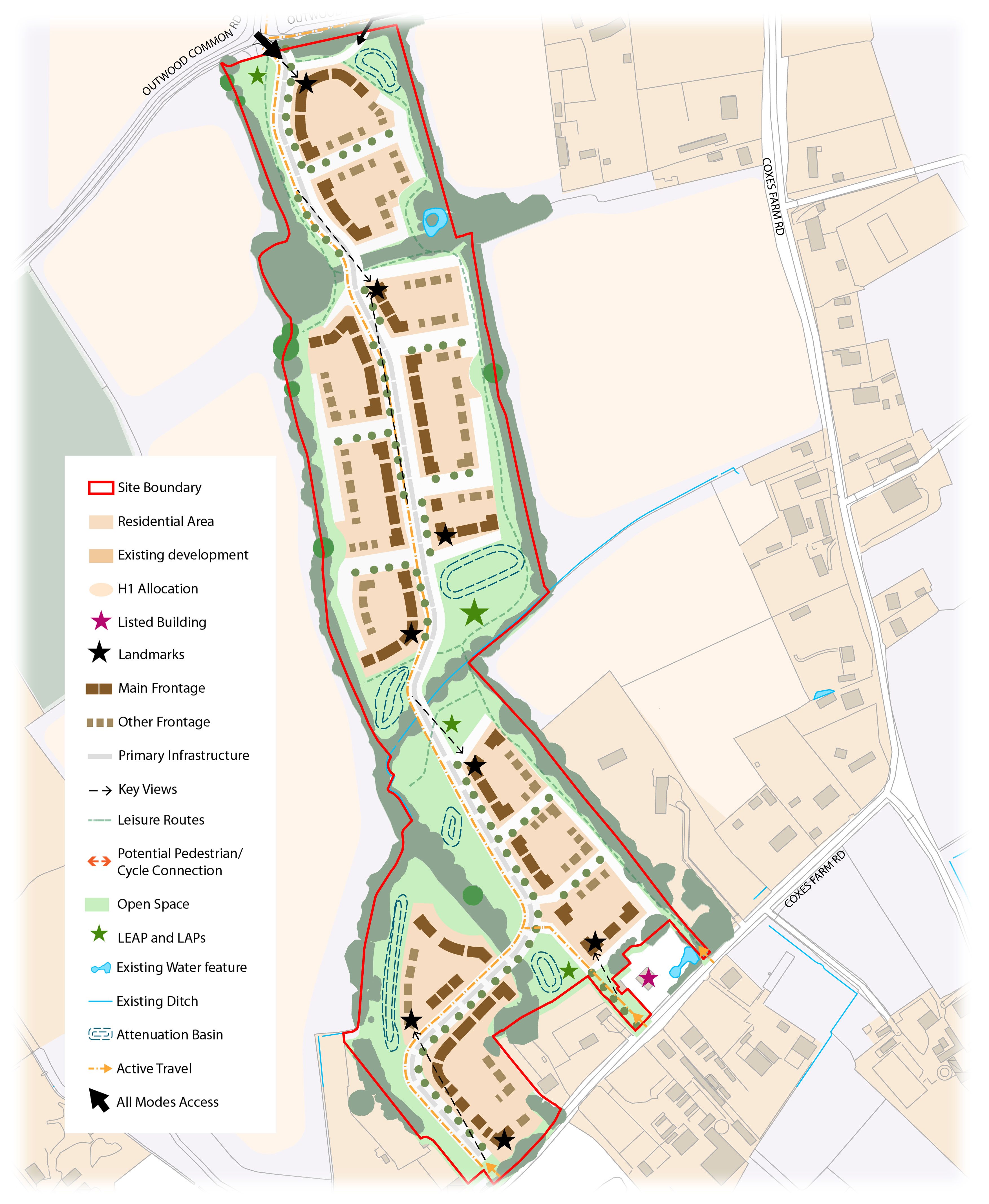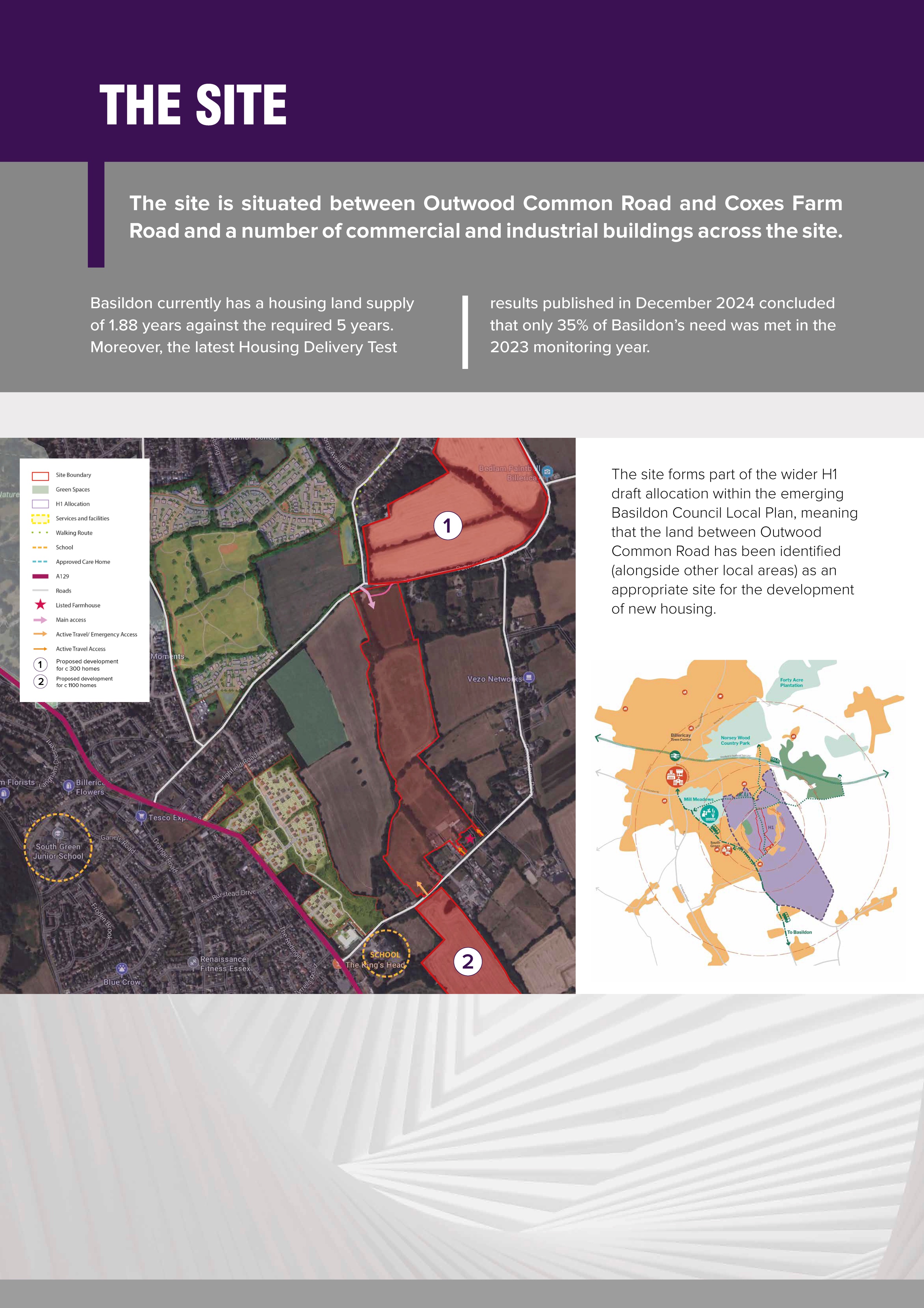 The site has been included within the wider H1 draft allocation in the emerging Basildon Local Plan, meaning the land between Outwood Common Road and Coxes Farm Road has been identified as an appropriate location for new housing.