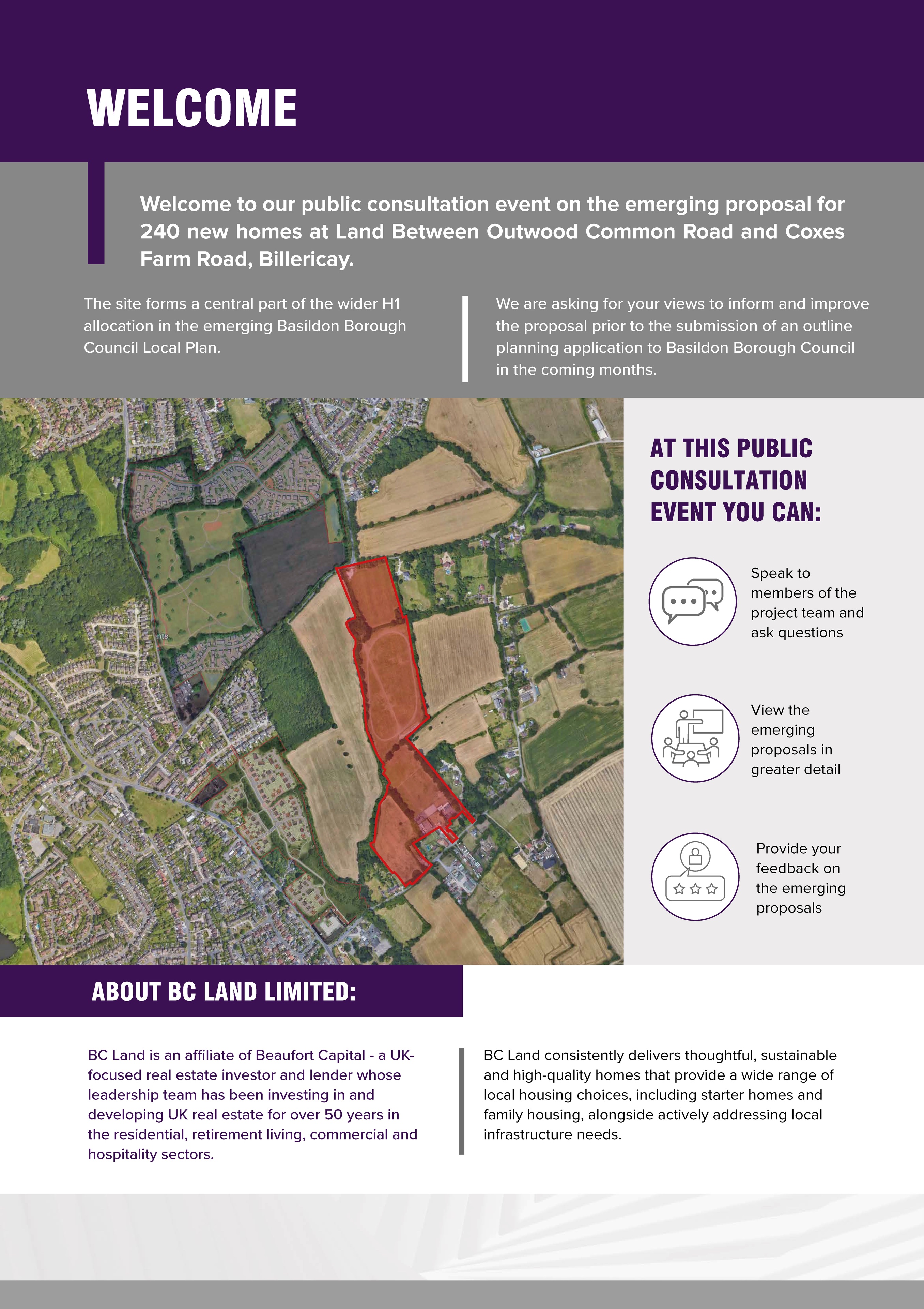 "To find out more about BC Land's proposals for Land at Outwood Common Road, you can view the digital exhibition boards that were displayed at our consultation event here: