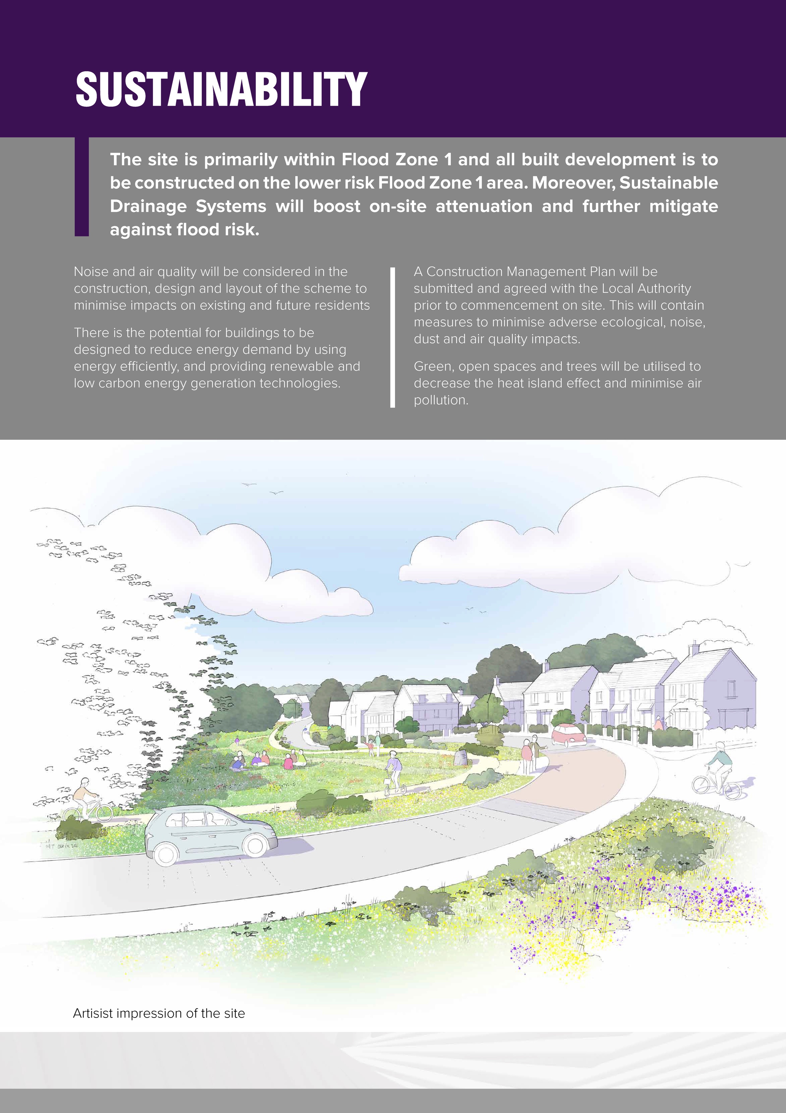 Extensive on-site assessments will ensure a clear understanding of the current flood risk across the site and how it interacts with the wider area. Sustainable drainage systems (SuDS) will ensure that the flood risk to surrounding land is not increased by holding water on-site and releasing it at a controlled rate—equivalent to the rate if the site were undeveloped.